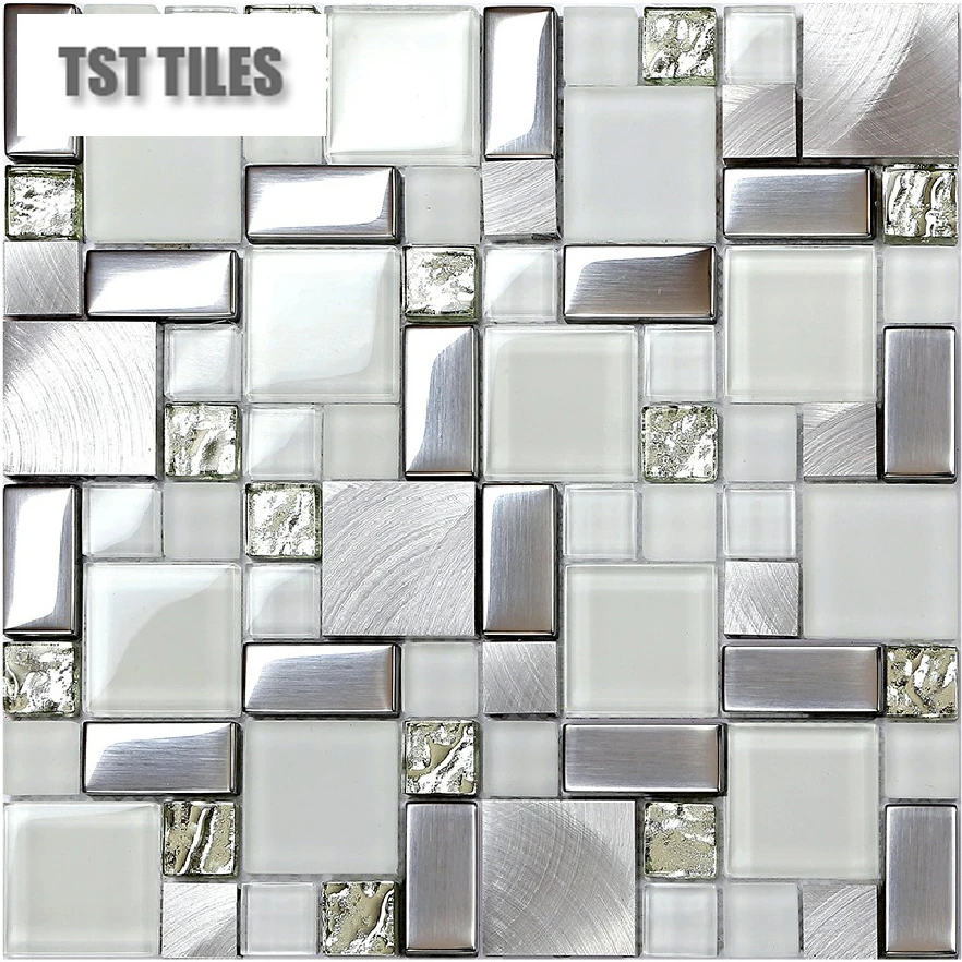 Mosaiques Argent Carreaux De Cuisine Dosseret Carreaux Metal Verre Salle De Bains Miroir Nouveau Modele De Douche Murs Autocollants Maille 12x12 Tuile Feuille Aliexpress