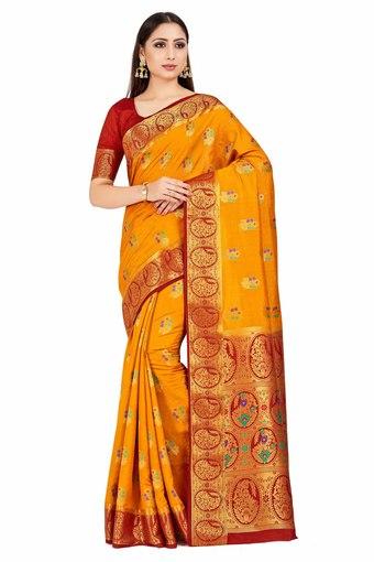 Buy Mimosa Paithani Style Art Silk Saree Color Orange Shoppers Stop