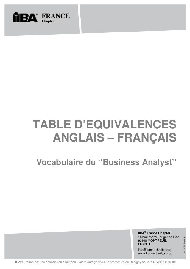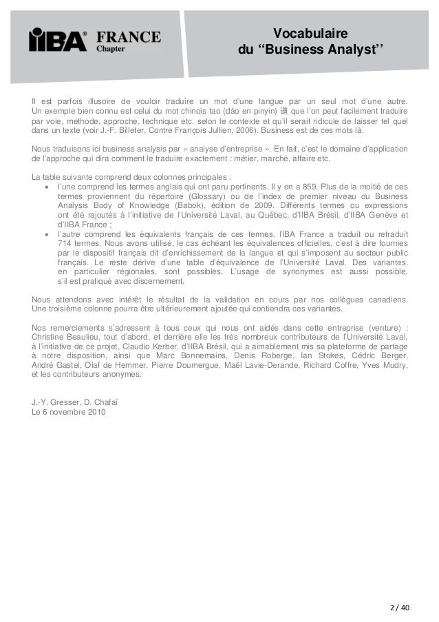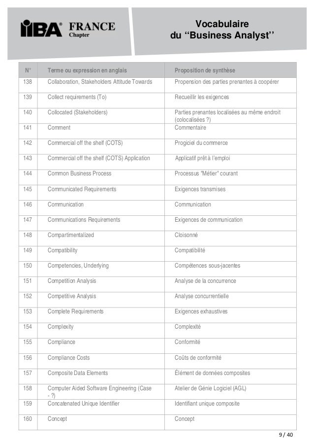 Glossaire Fr En De Vocabulaire Du Business Analyst